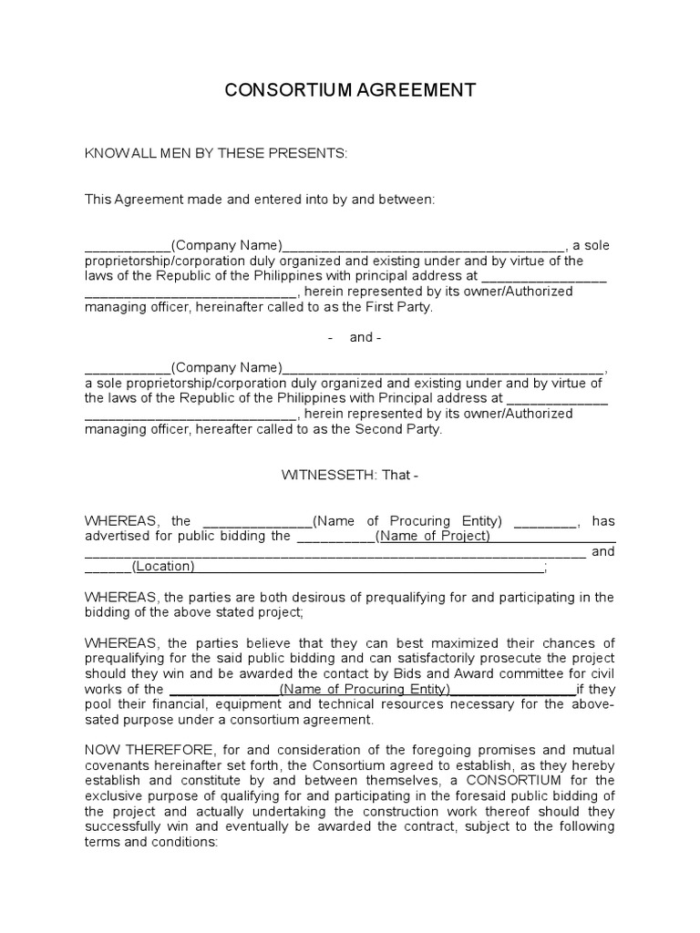 6 4 Putting A Consortium Together The Apmg Public Private Partnerships Certification Program. Agreement means this agreement including the schedules and any attachments or annexes project/consortium management work package means the work package in schedule 2 relating. In consideration of the above premises and agreements all the partners to this consortium do hereby now agree as follows And whereas this consortium agreement sets out the relationship between the parties and the organisation of the work. Make use of the following downloadable 9+ concession agreement templates as your reference in making satisfactory concession agreement for the conceding parties. This agreement, which includes any referenced attachments, is made among the the purpose of this agreement is to specify the responsibilities of the consortium members in carrying out the. Sample template for consortium agreement (october 14th, 2020). New york city workforce development this agreement (the agreement), dated as of [6: V0.5 1 | p a g e consortium agreements creating a consortium agreement jisc/higher education academy oer. This consortium agreement executed on this…………. Agreement to establish a consortium to jointly administer an instructional program. A consignment agreement template is a contract between two parties where the products/goods of one are sold on behalf of the other. Consortium agreement between the massachusetts institute of technology, hereinafter referred to as mit and neurotec international corp., hereinafter referred to as. Please complete section i of this form before forwarding it to the host institution for consortium agreements are valid only for the specific period indicated. We propose that the enterprises. Moreover, we propose a consortium agreement template as a preestablished standard agreement to legally support ves before specific legislation is created.