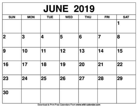 June 2019 Calendar - So, It's Ideal To Get Married In This Month.